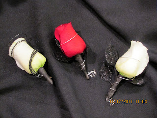 The red roses really pop against the black. We added some feathers and bling to really glam up the reception decor and the bouquets. What can be more fun than friendly conversation and fresh flowers with my awesome staff!
